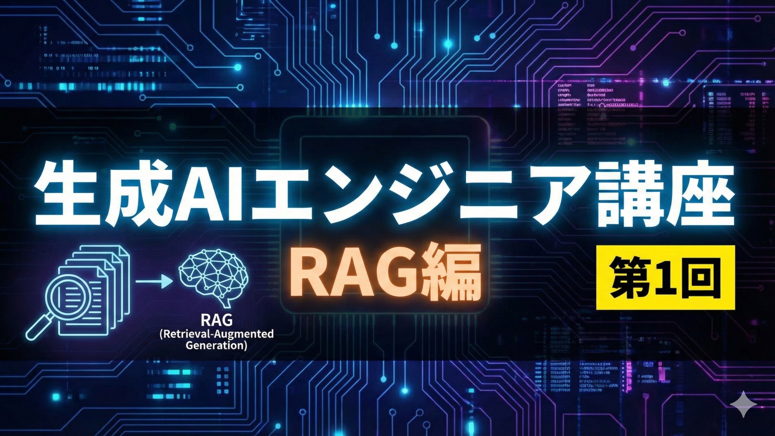「RAGの全体像とノーコード体験」(全3回セット・第1回) 本動画は「生成AIエンジニア講座 RAG編」(全3回セット)の第1回です。 生成AIの基礎から出発し、RAG(Retrieval-Augmented Generation)の概要と仕組みを整理します。LLM が外部データを検索・参照しながら回答を生成する流れや、ファインチューニングとの違い、RAG が向く/向かないユースケースを図解を交えて解説します。 後半ではノーコードツール「dify」を用いて、社内文書検索のようなRAGアプリを実際に構築します。 検索 → コンテキスト付与 → 回答生成という一連の処理フローを体験しながら、後続の第2回・第3回で扱うPython実装編・応用編につながる基礎を身につけます。 エンジニアだけでなく、ビジネス職やマネジメント層の方でも理解しやすい導入回です。 【この回で使用する教材】 教材(スライド):